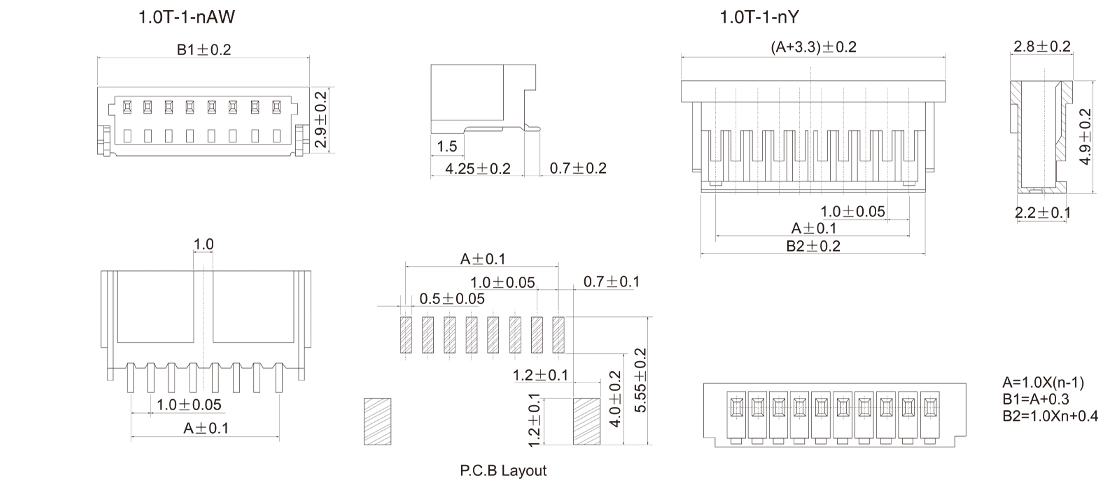 FPC 0.5mm XP SMT SIDE ENTRY TYPE H=1.2mm H=1.5mm H=2.0mm