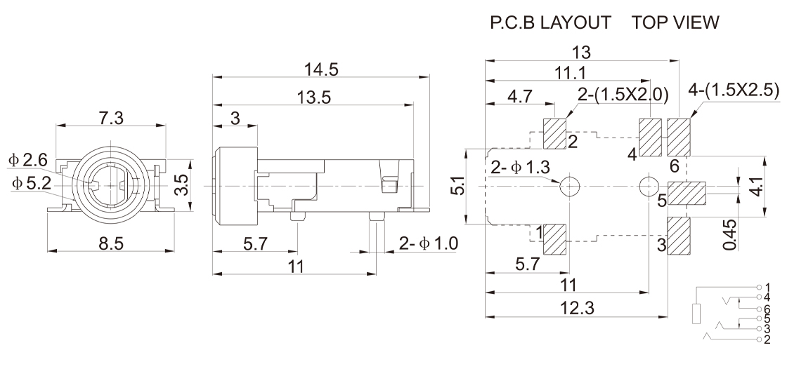 6.35 Earphone socket