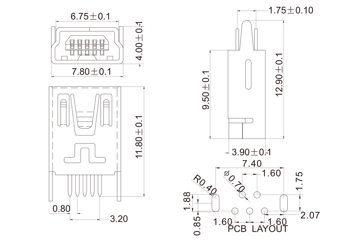 MINI USB-MV-09 MINI USB 5P母座B Type 180°直脚