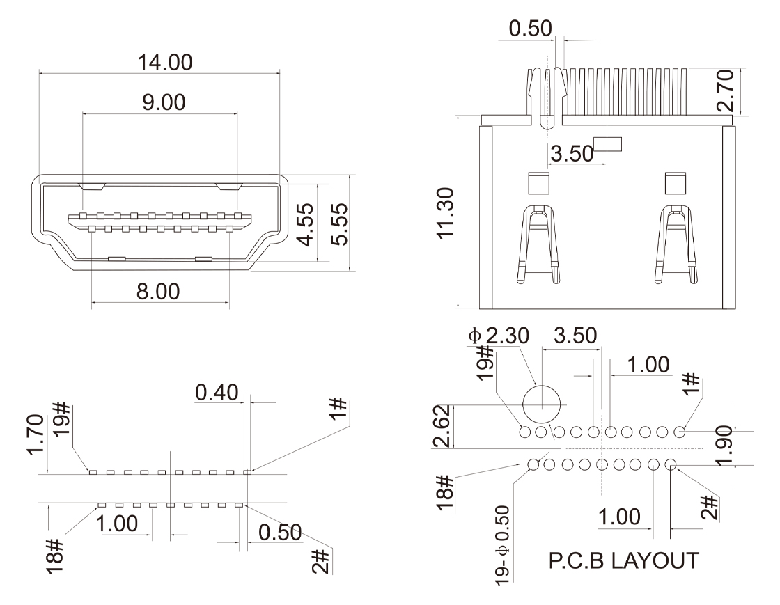 HDMI-M-1904 HDMI 19P 母座焊线式/带PCB