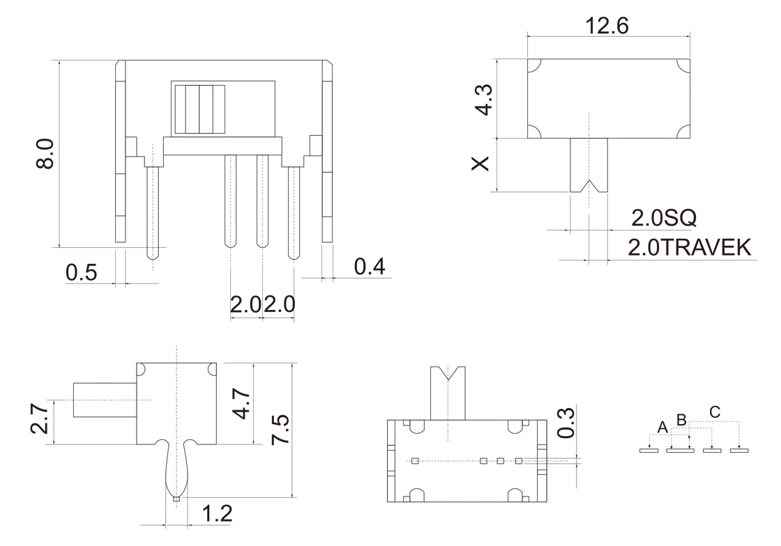 Side knob/Toggle slide switch