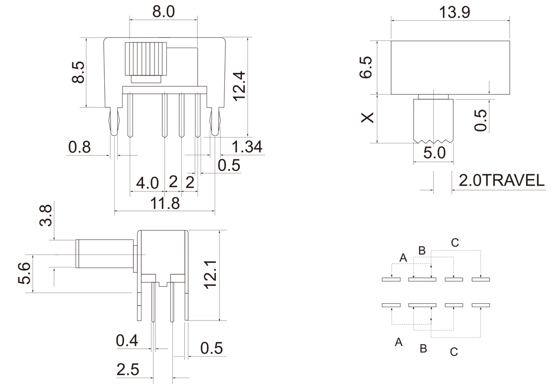 Side knob/Toggle slide switch
