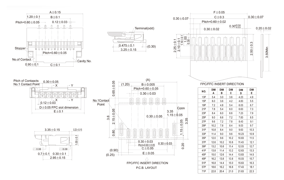 FPC 0.5mm XP SMT SIDE ENTRY TYPE H=1.2mm H=1.5mm H=2.0mm
