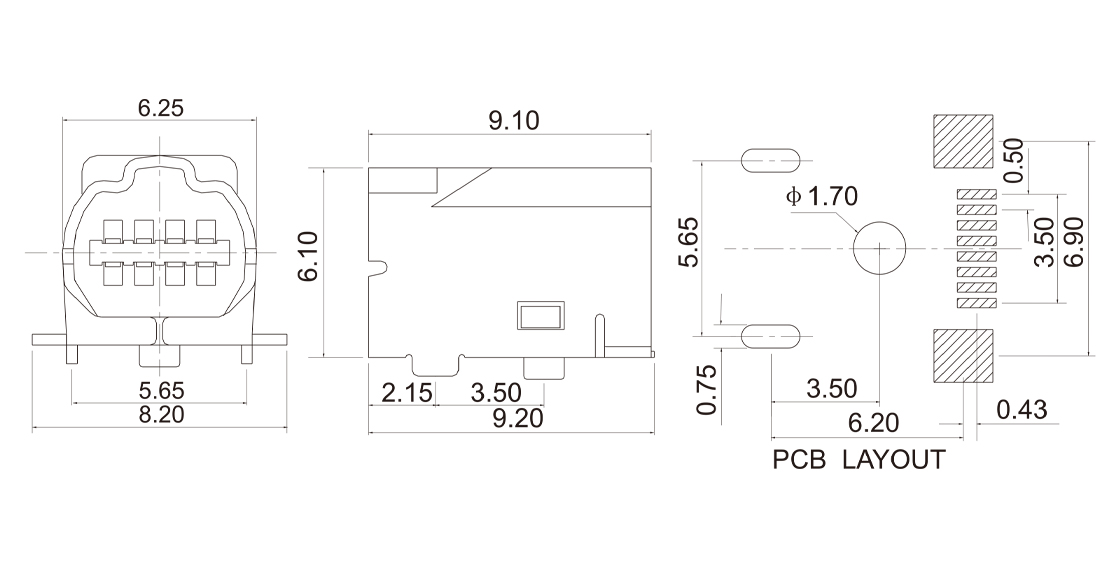 USB-AF-01 USB A母座90°Dip内扣型