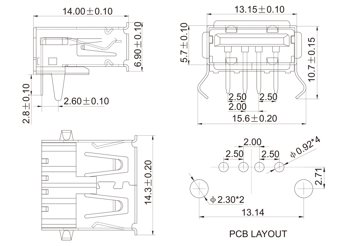 USB-AF-01 USB A母座90°Dip内扣型