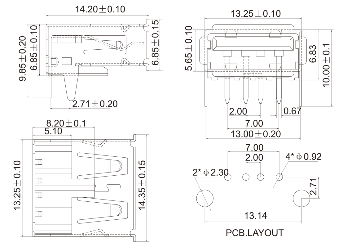 USB-AF-01 USB A母座90°Dip内扣型