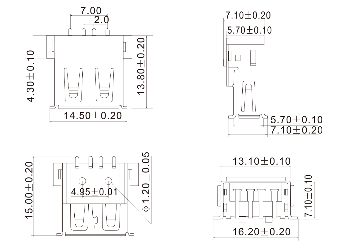 USB-AF-05 USBA母座90°SMT