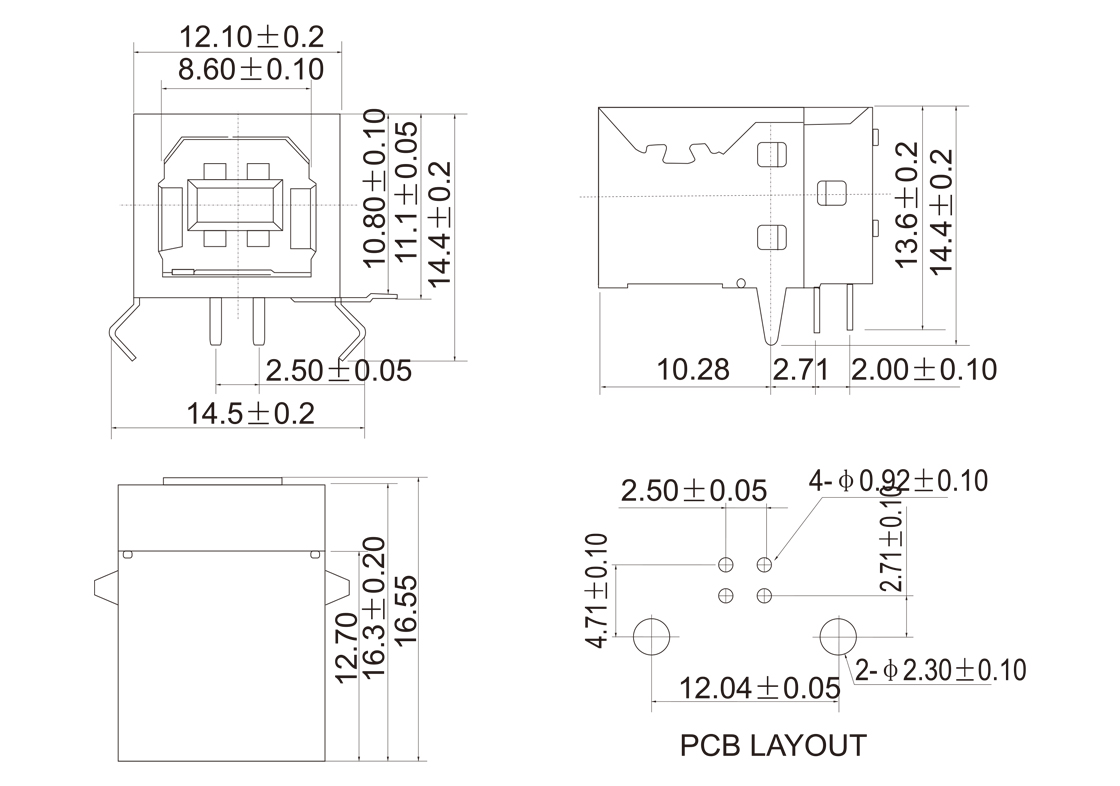 USB-BF-01 USB B母座90°Dip