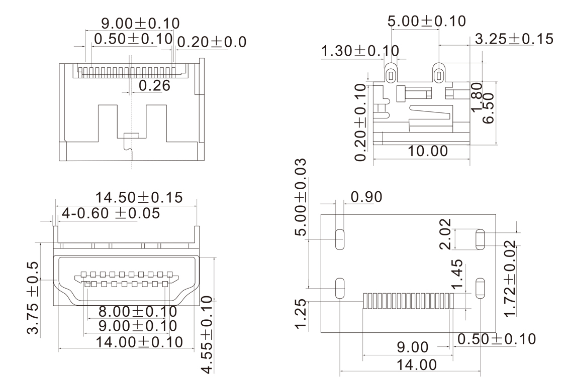 HDMI-M-1904 HDMI 19P 母座焊线式/带PCB
