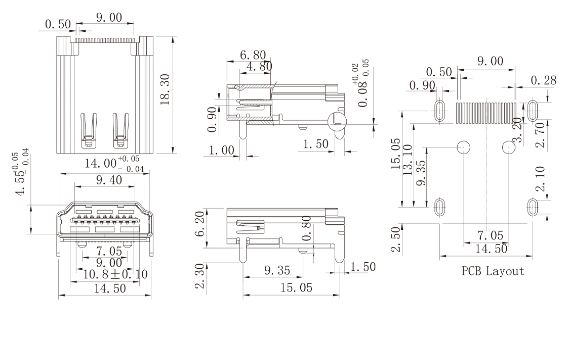 HDMI-M-1904 HDMI 19P 母座焊线式/带PCB
