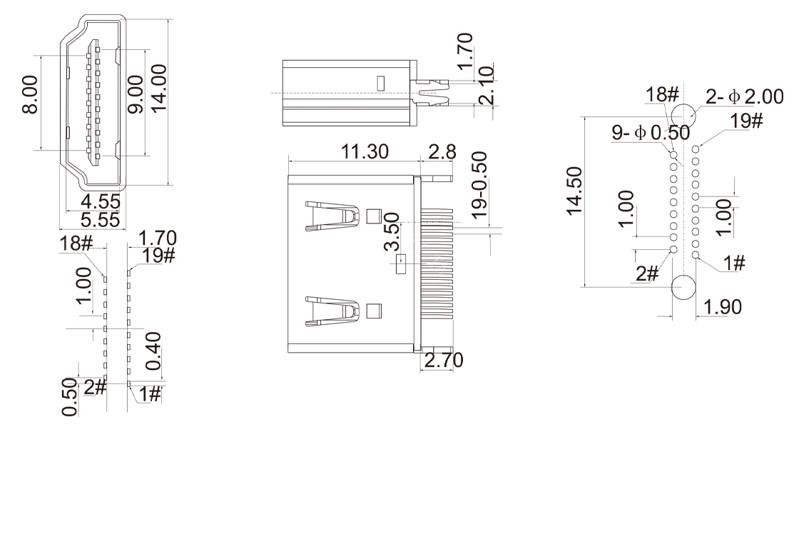 HW-HD-010 HDMI 19P 母座脚90° 针贴片式 B款