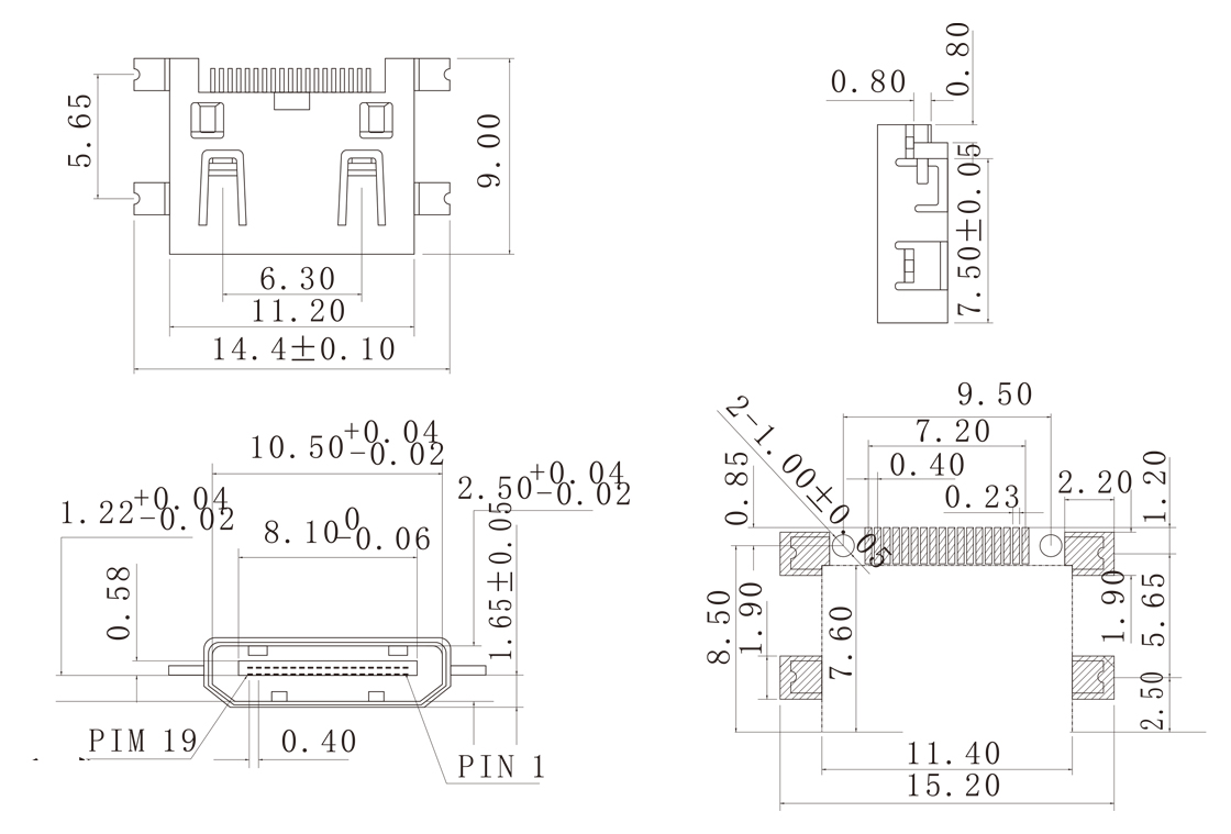 MINI HDMI-M-1902 MINI HDMI 19P母座沉板式